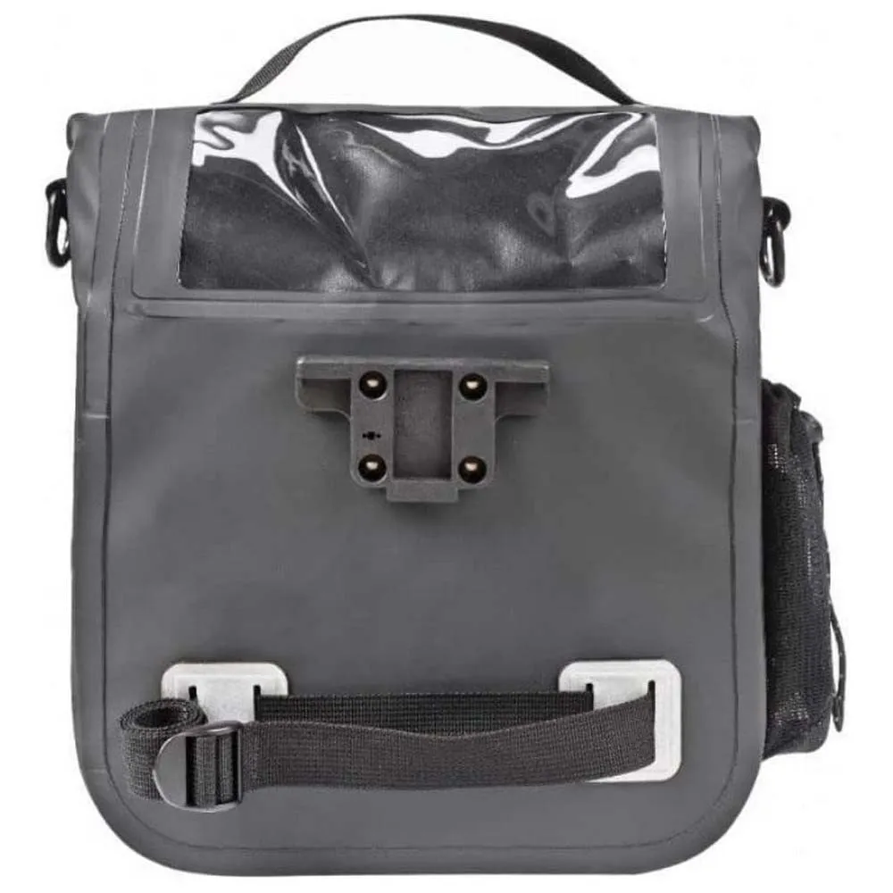 Dry Handlebar Bag With 8 Liters Capacity . Waterproof Thanks To Its Roll-Up Closure With An Adjustable Central Strap And Its Welded Seams. Sold With An Automatic Mount And 2 Sets Of Adapters (Handlebar Diameter 31.8 Mm And 25.40 Mm) For Quick Assembly And Disassembly. In Order To Maintain It As Well As Possible When Cycling, There Is A Removable Adjustable Strap On The Rear Panel To Fix To The Handlebar Stem. It Has A Touch Screen Window (18 * 10 Cm) On The Top To Keep The Phone, Gps Or A Map Dry. Inside, There Is A Zippered Mesh Pocket (23 * 17 Cm) And On The Left Side, You Can Put A Water Bottle In An Outer Mesh Pocket. Thanks To Its Removable Shoulder Strap, It Can Be Used As A Bag. Reflective Elements And Light Loop On Front To Increase Safety Of Going Out At Night.