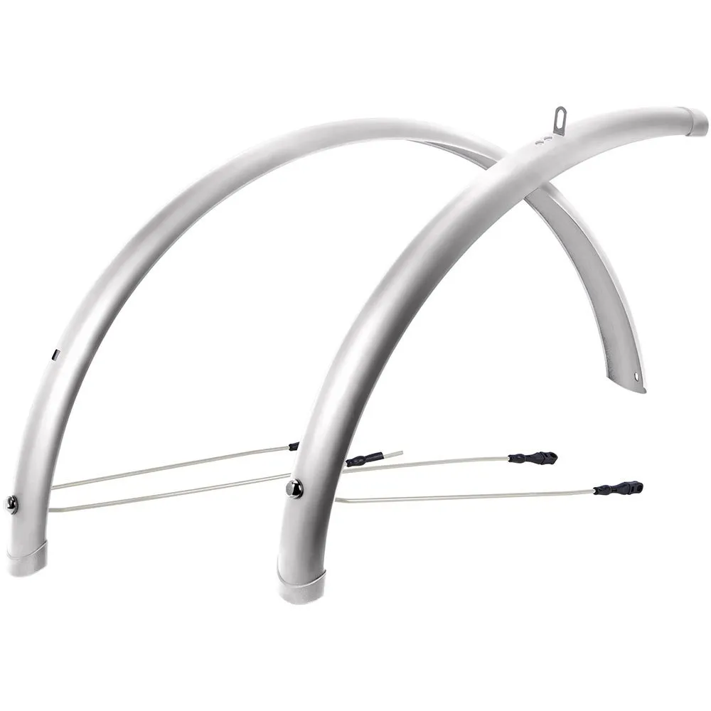 The ´´Splash Protect´´ mudguards from CONTEC are made of sturdy, break-resistant plastic and hold over the supplied, 3.4 mm thick steel struts. The struts for the front mudguard are equipped with a Mini Clip XL safety system should about a branch get into the spokes, the struts are released from the otherwise stable connection.