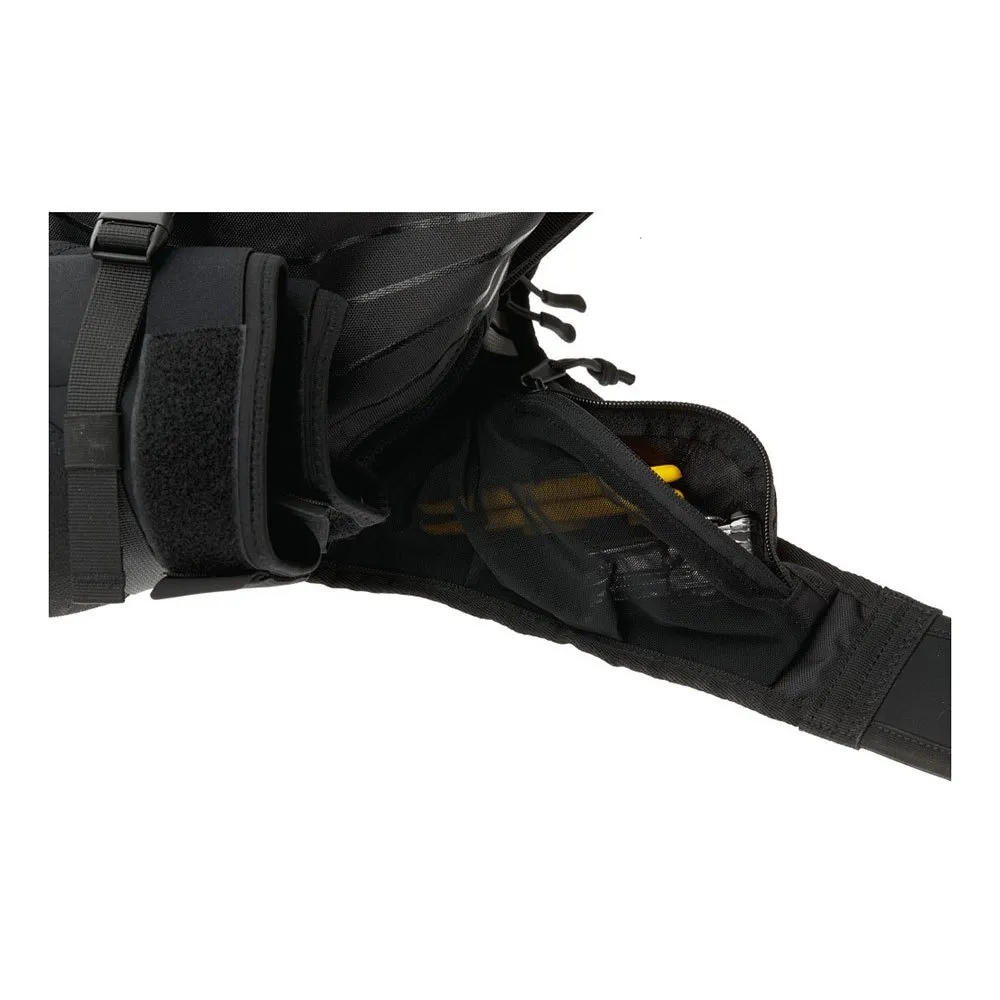 The bag contains a main compartment with 4 inner pockets, a separate bladder, a front pocket including a small compartment for tools and pumps, and a waist bag. The BA2’s additional back compartment offers room for the back protector (BP100) and a bladder (BH300). Even when carrying the battery in the BA2 E, the protector compartment still has enough room to accommodate the BP100 and the BH150 bladder. Convenient: Holder for iPhone® Drybag from Topeak® on the shoulder strap.
