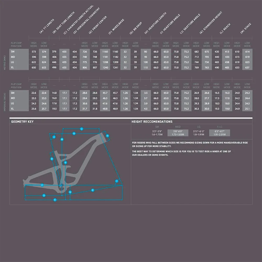 The new RIP takes its place as the king of the mountain and Niner’s most capable trail bike. A product of our [R]Evolution, the RIP renews our outlook on what a long travel trail bike can and should do. It’s the go-to for backcountry epics and big terrain when you need every arrow in the quiver. Built with 150mm of remarkably versatile suspension on a lightweight frame, the RIP gives you all the traction, control and fun that used to be the domain of big, all mountain crushers, but without the extra pounds. Now you can enjoy more travel with less weight, and when you can have more for less?…well, you always say yes. Focusing first on the frame, the critical feature is the [R]Evolution geometry that we have tested, evaluated and carefully selected. The roomy cockpit has a comfortable reach for short stem lengths, giving you quick handling and plenty of maneuverability to go mobbing through rock gardens and barreling big berms. The steep seat angle gets you centered in the bike and pairs nicely with the short 439mm chainstay length for better pedaling efficiency than anyone deserves from a long legged trail bike. And of course the compact rear allows you to square off turns and play your way down the trail.