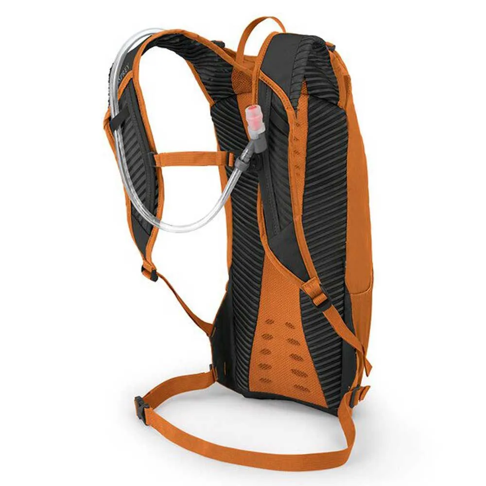 The Osprey Katari 7L Hydration Pack features a streamlined, minimalist design that keeps the bottle stable even during the fastest of moves. Innovative breathable mesh shoulder pads, back panel and hip belt keep the pack snugly against your back. Always keep the suction valve within reach thanks to the innovative magnetic chest strap, which can be opened and closed with one hand and without taking your eyes off the trail. The vertical zippered front pocket gives you easy access to your essentials, whether it´s tools for the bike or snacks for the trail. Includes a scratch-protected pocket on the top so you can safely store your sunglasses or phone, as well as a separate pocket and key clip. Flasher support and reflective prints make you more visible in low-light conditions.