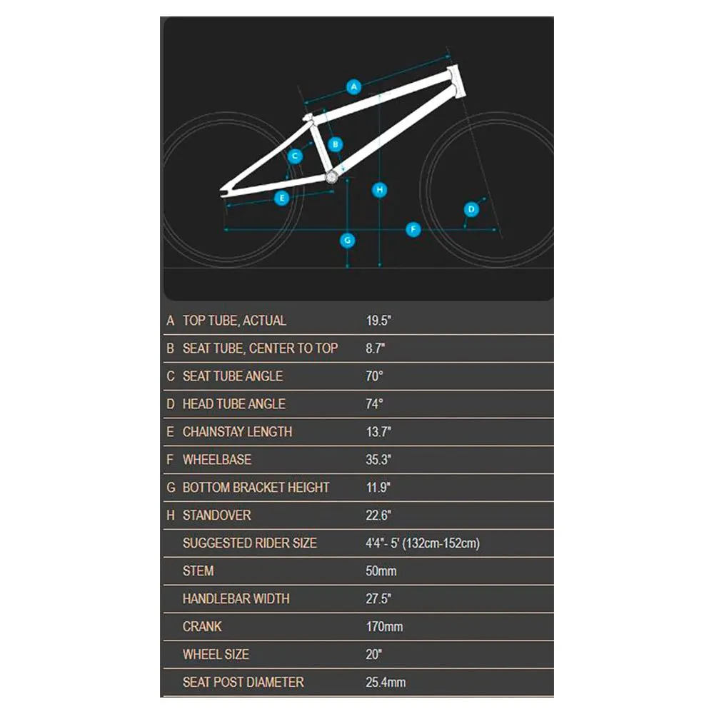Cranks: 3-pc Cr-Mo, 170mm, American Bottom Bracket, 140mm Spindle Length, 19mm Spindle Diameter, 25T SE Sprocket.