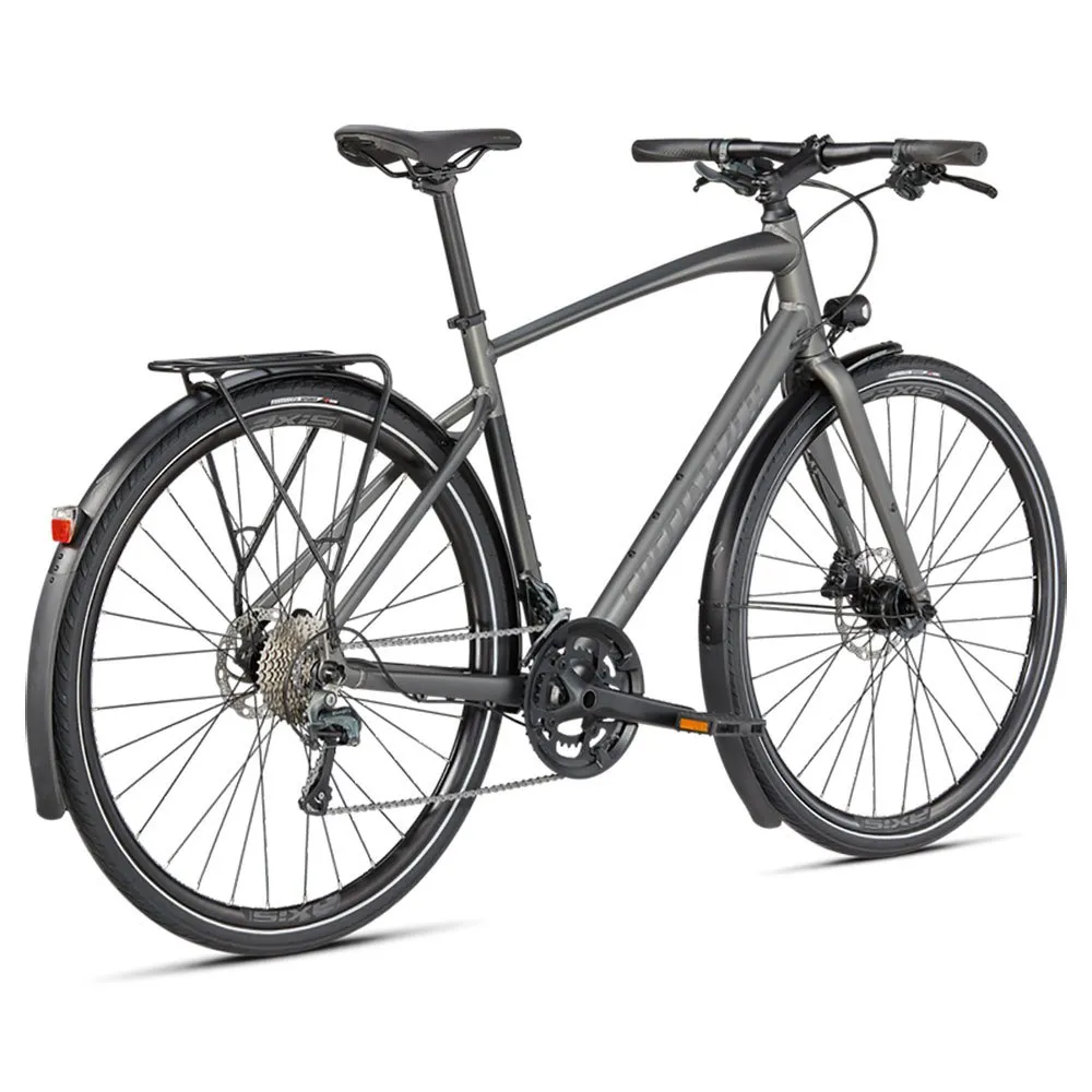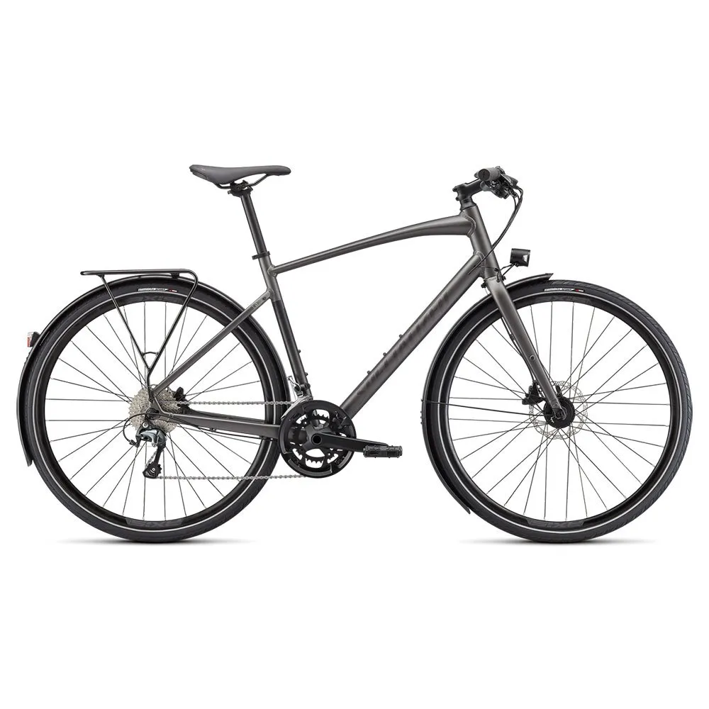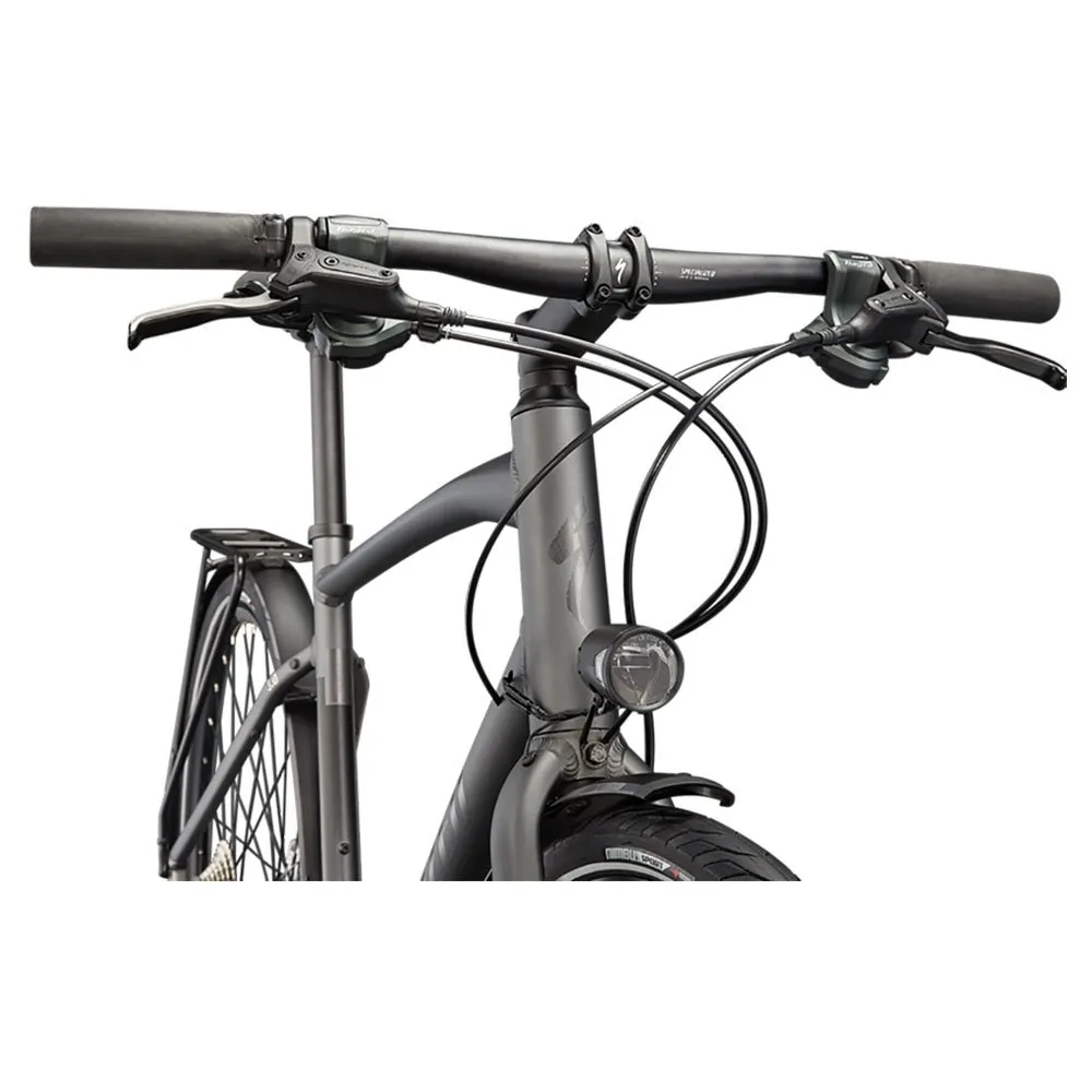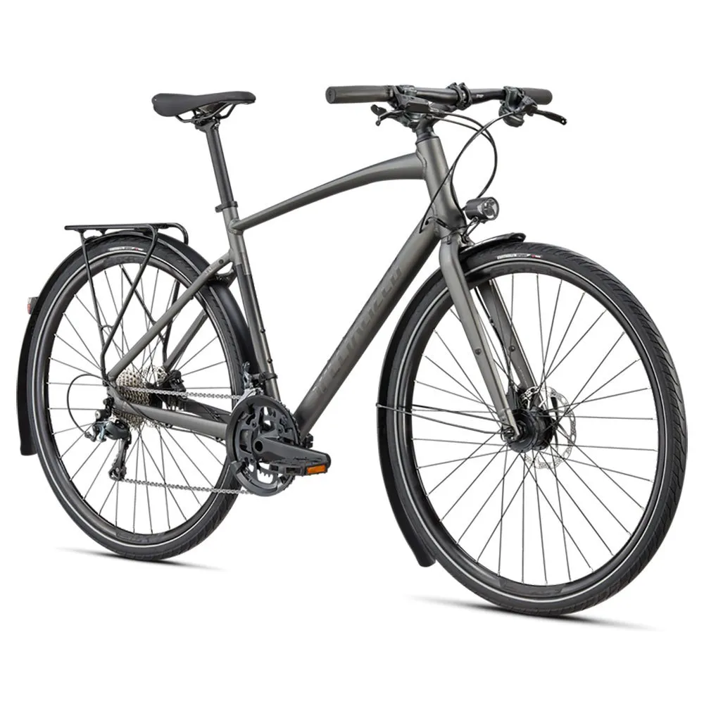 Frame: Specialized A1 Premium Aluminum, Fitness Geometry, butted tubing, internal cable routing, flat-mount disc, quick-release, Plug + Play rack/fender mounts