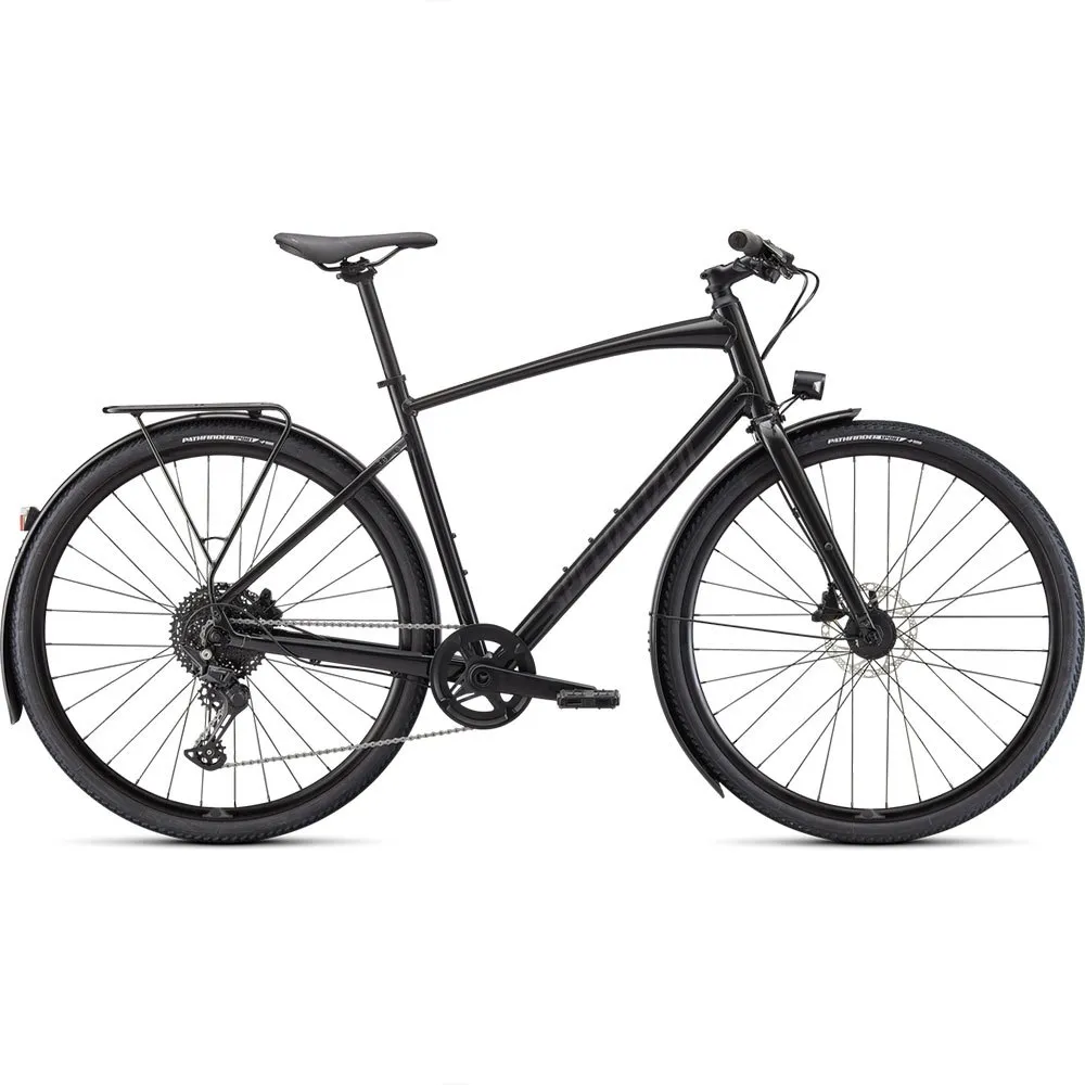 Frame: Specialized A1 Premium Aluminum, Fitness Geometry, butted tubing, internal cable routing, flat-mount disc, quick-release, Plug + Play rack/fender mounts